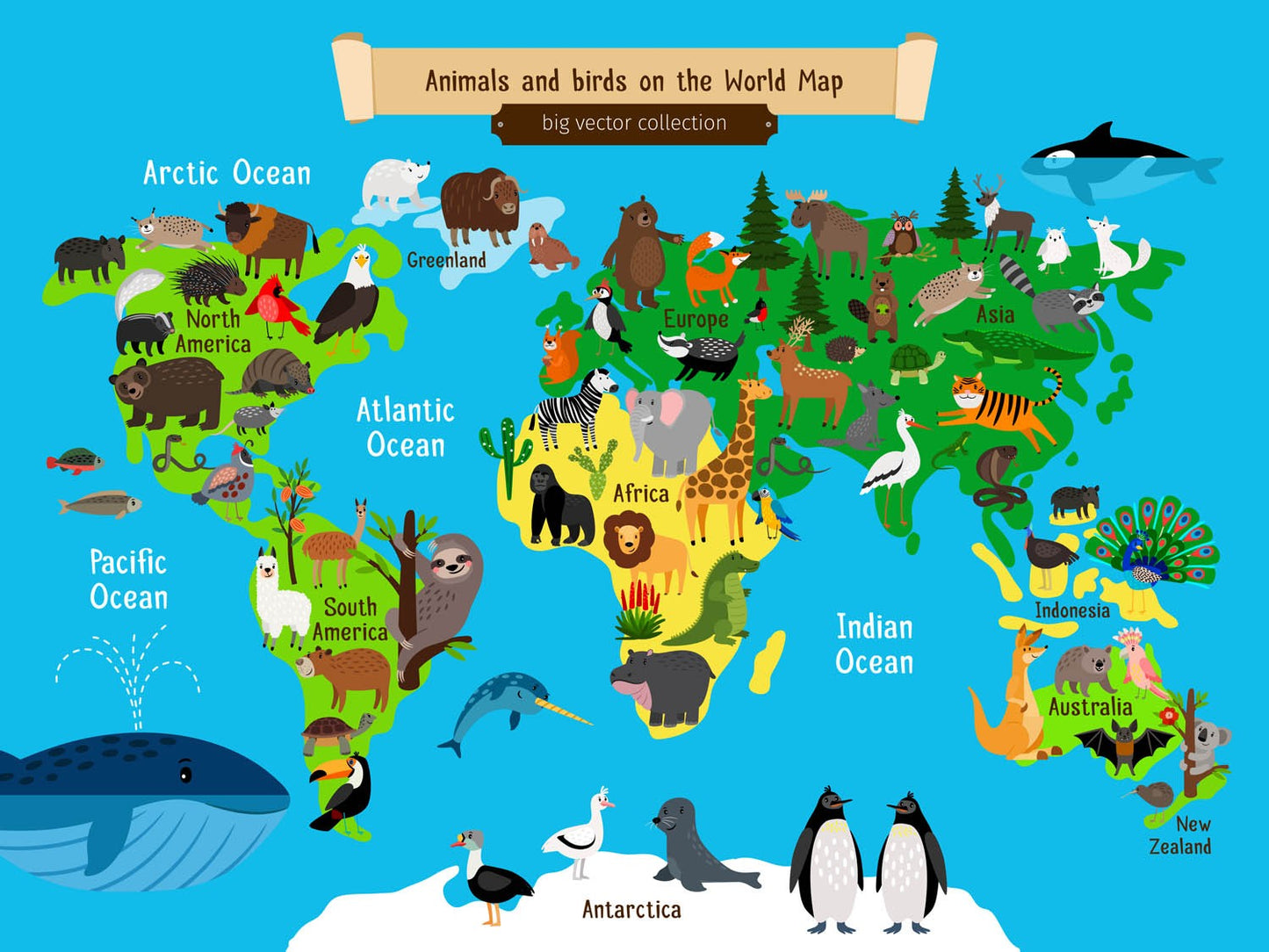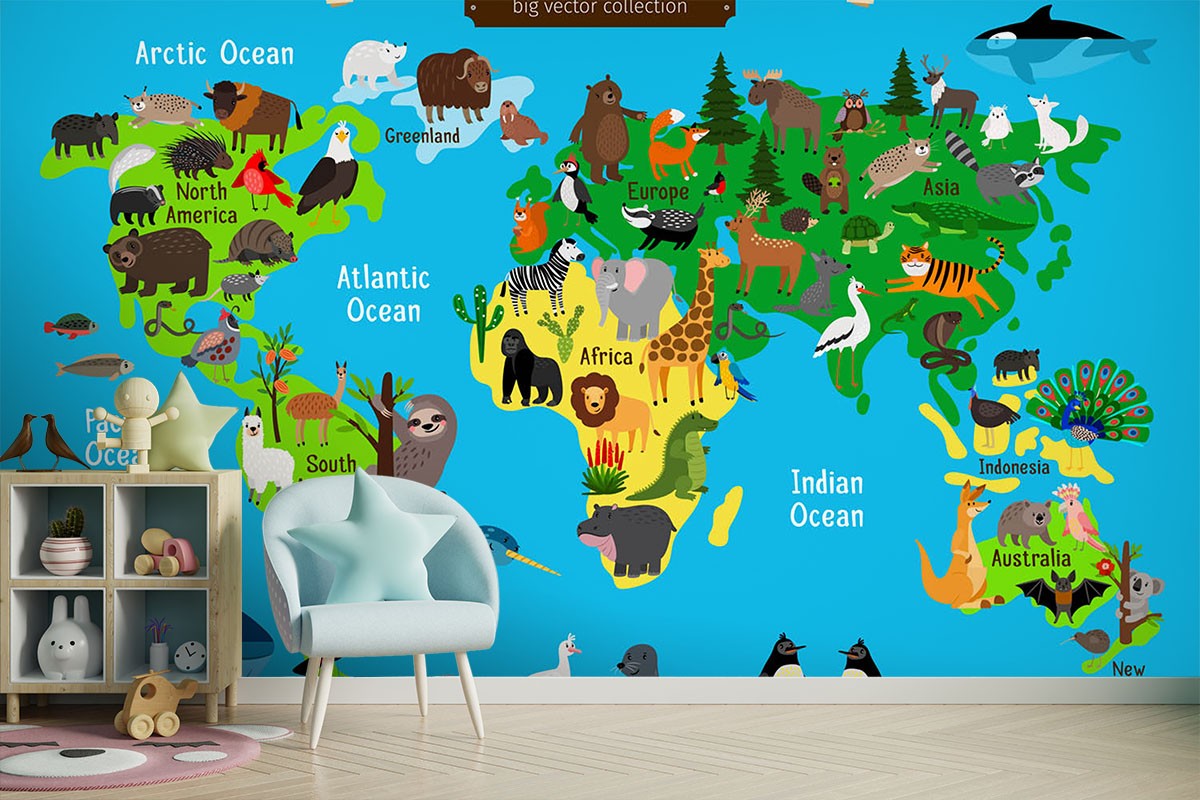 Animals Birds Kids Map Colorful Wallpaper Mural