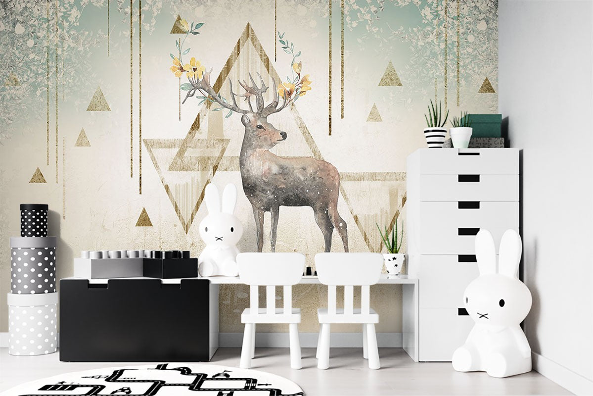 Antelope Dutch Flowers Kids Animal Gray Wallpaper Mural,Self-Adhesive Peel And Stick 3D Wall Decal,Removable Bedroom Wall Decor