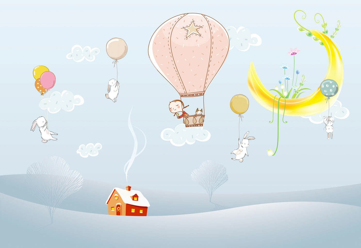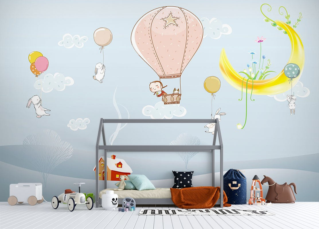 Balloon House Kids Cartoon Multicolour Wallpaper Mural,Self-Adhesive Peel And Stick 3D Wall Decor,Australian Company Removable Wall Decor