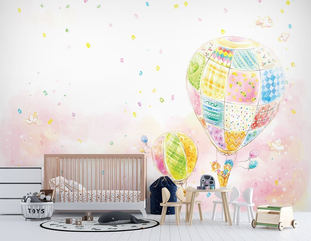 Balloons Kids Fantasy Pink Wallpaper Mural,Self-Adhesive Peel And Stick 3D Wall Mural,Removable Bedroom Wall Decor