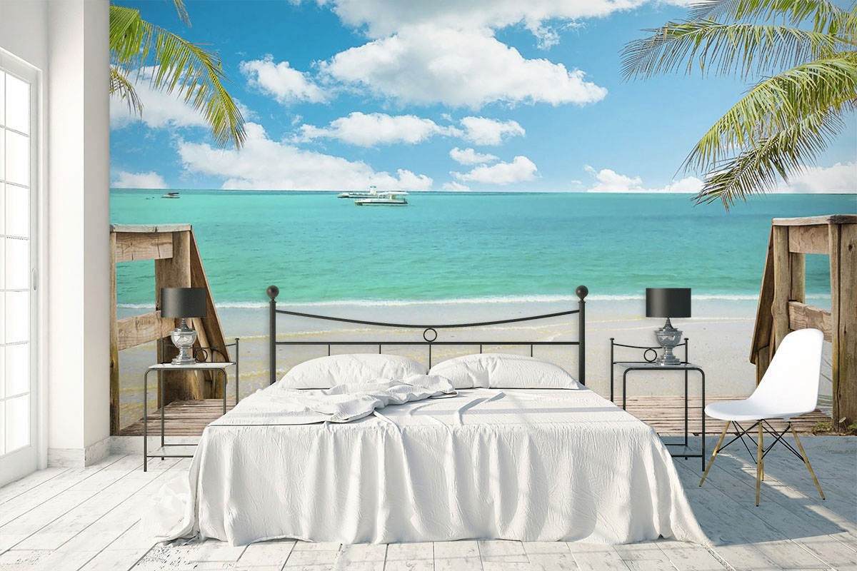 Beach Steps Seas Oceans Blue Wallpaper Mural,Self-Adhesive Peel And Stick 3D Wall Decal,Australian Company Designer Wall Decor