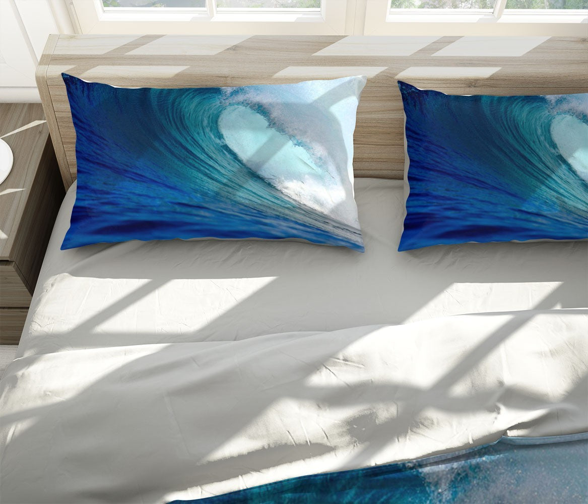 Big Wave Duvet Cover Set W Pillow Cover, Blue Beach Wave 3D Quilt Cover, Single Double Queen King Size Doona Cover