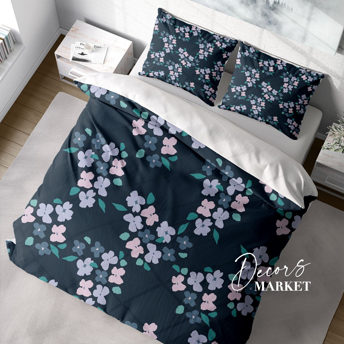 Flourishing Blossom Flower Duvet Cover Set w Pillowcases, Blue Floral Patterns 3D Quilt Cover, 3pc Single Double Queen King Size Doona Cover
