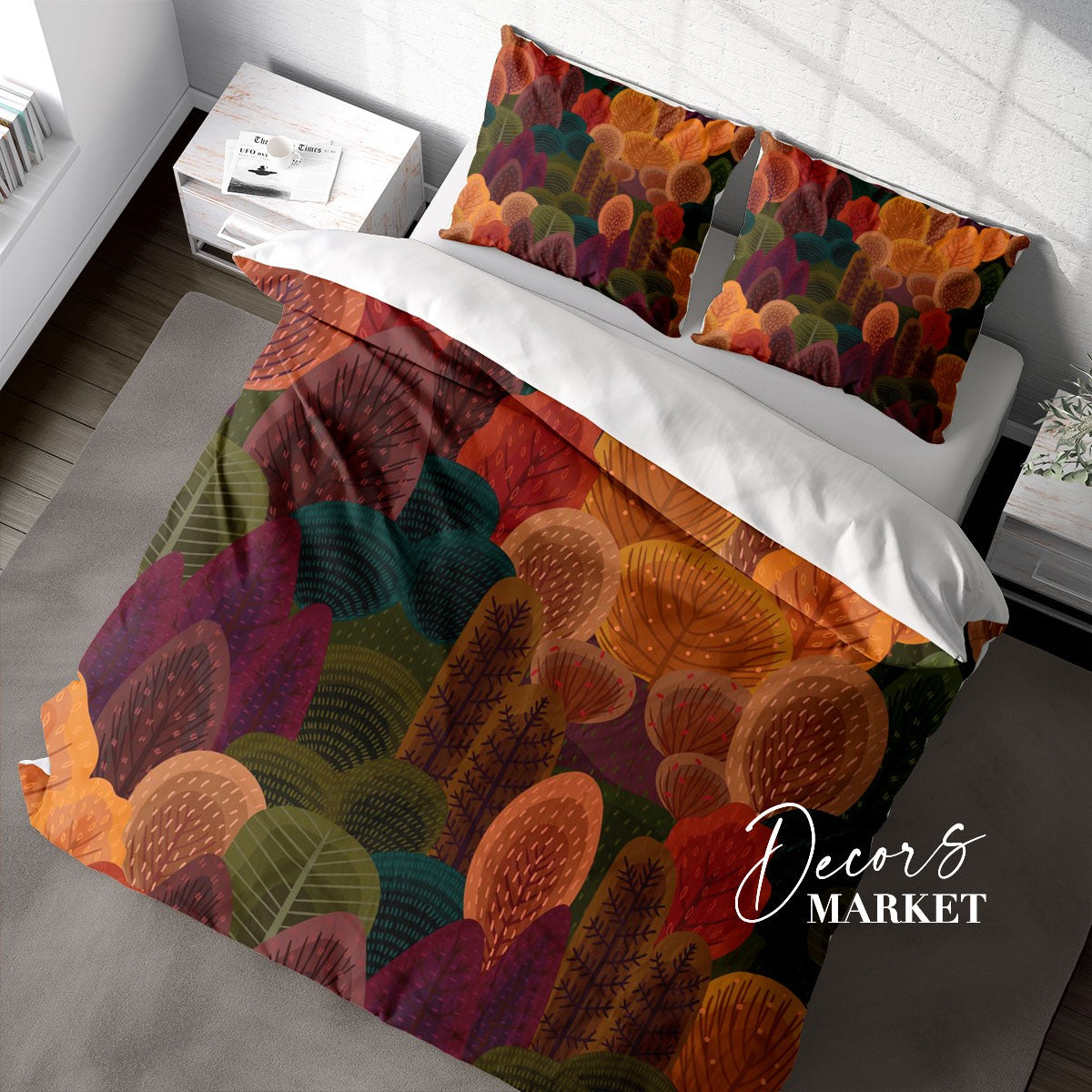 Cartoon Red Leaves Duvet Cover Set w Pillowcases, Brown Floral Leaves 3D Quilt Cover, 3pc Single Double Queen King Size Doona Cover