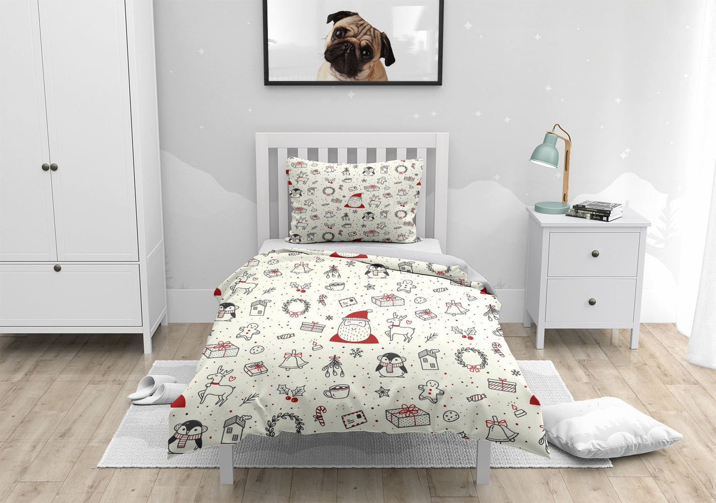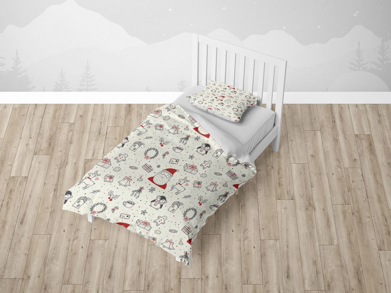 Christmas Santa Elk Duvet Cover Set w Pillowcases, Red Kids Patterns 3D Quilt Cover, 3pc Single Double Queen King Size Doona Cover