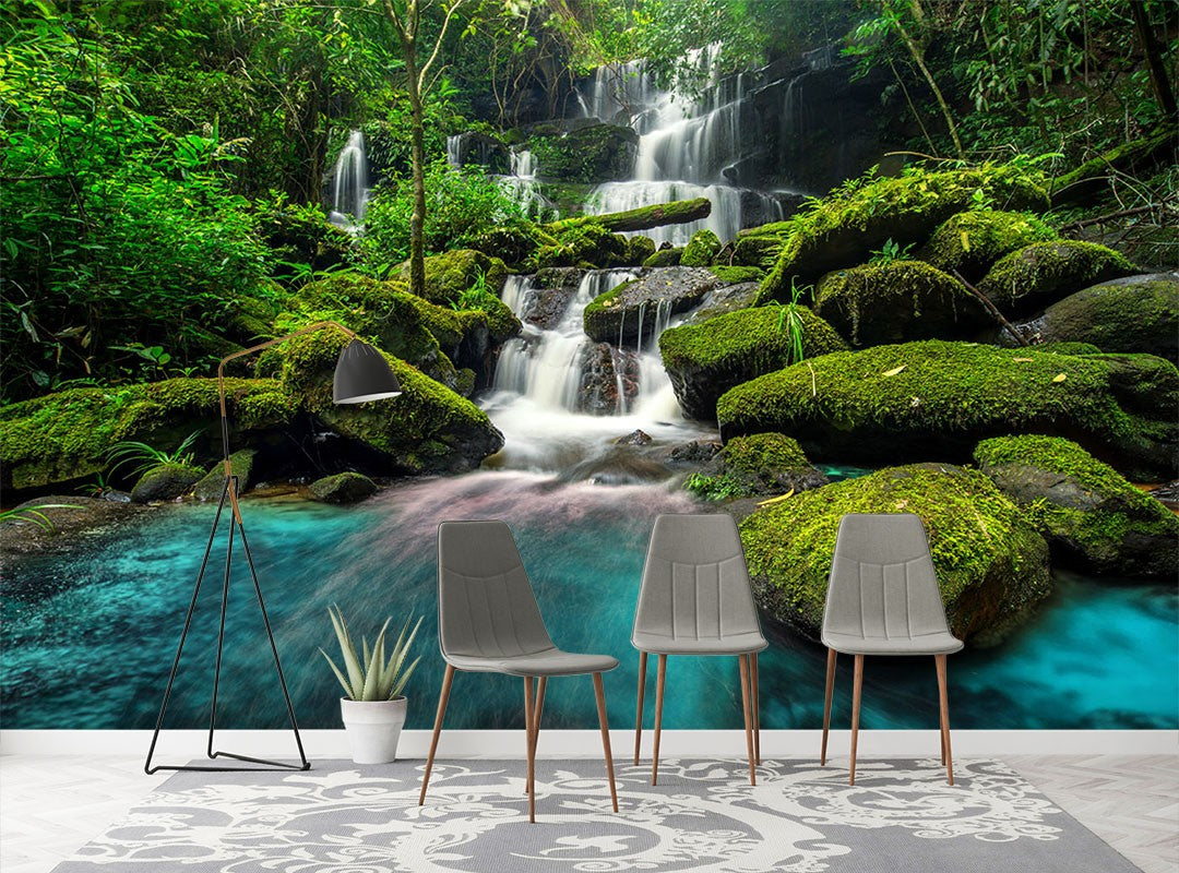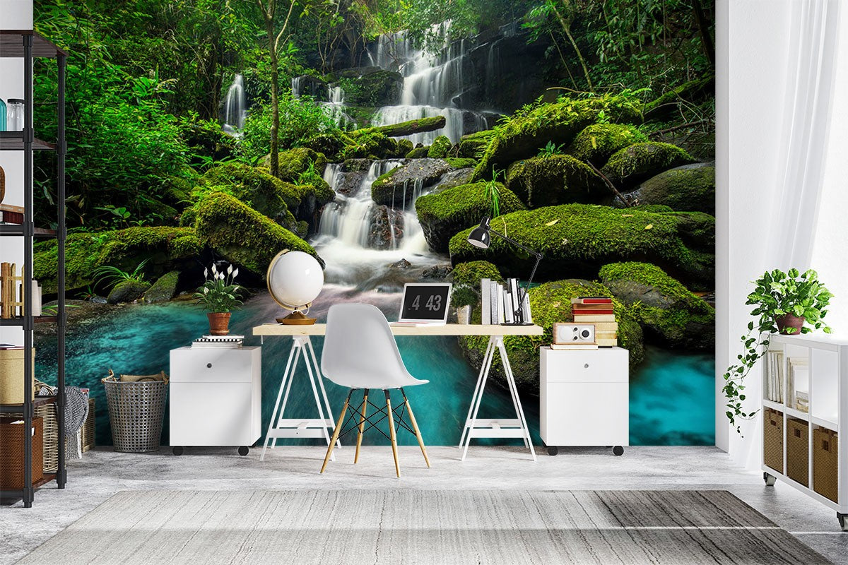 Creek Waterfall Nature Green Wallpaper Mural,Self-Adhesive Peel And Stick 3D Wall Paper,Designer Australian Company Wall Decor