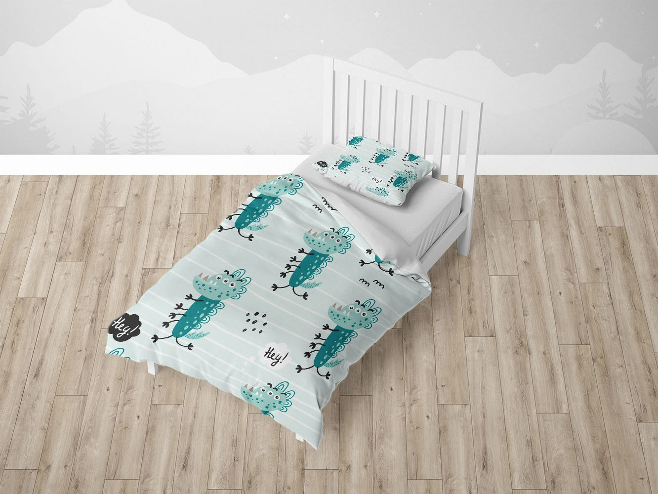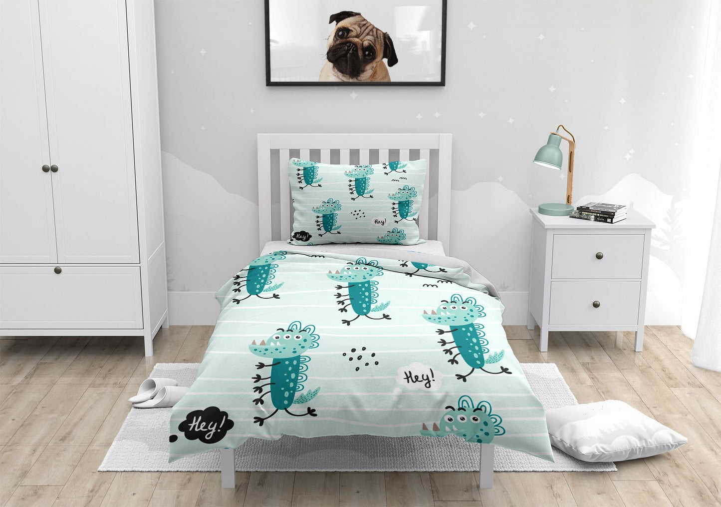 Cute Little Monster Duvet Cover Set w Pillowcases, Green Kids Cartoon 3D Quilt Cover, 3pc Single Double Queen King Size Doona Cover
