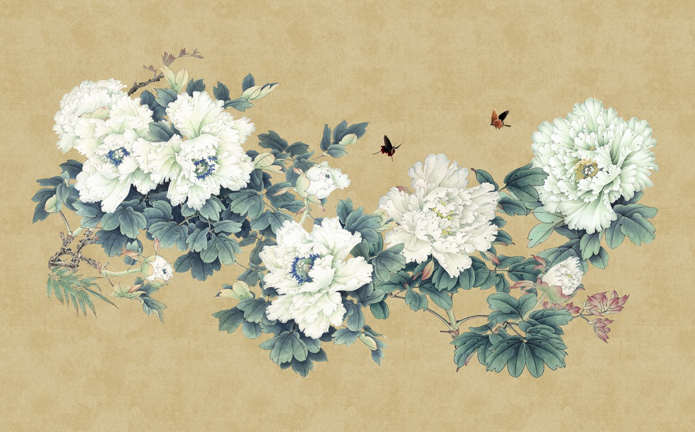Dutch Flower Painting Art Chinoiserie Green Wallpaper Mural,Self-Adhesive Peel And Stick 3D Wall Paper,Designer Bedroom Wall Decor