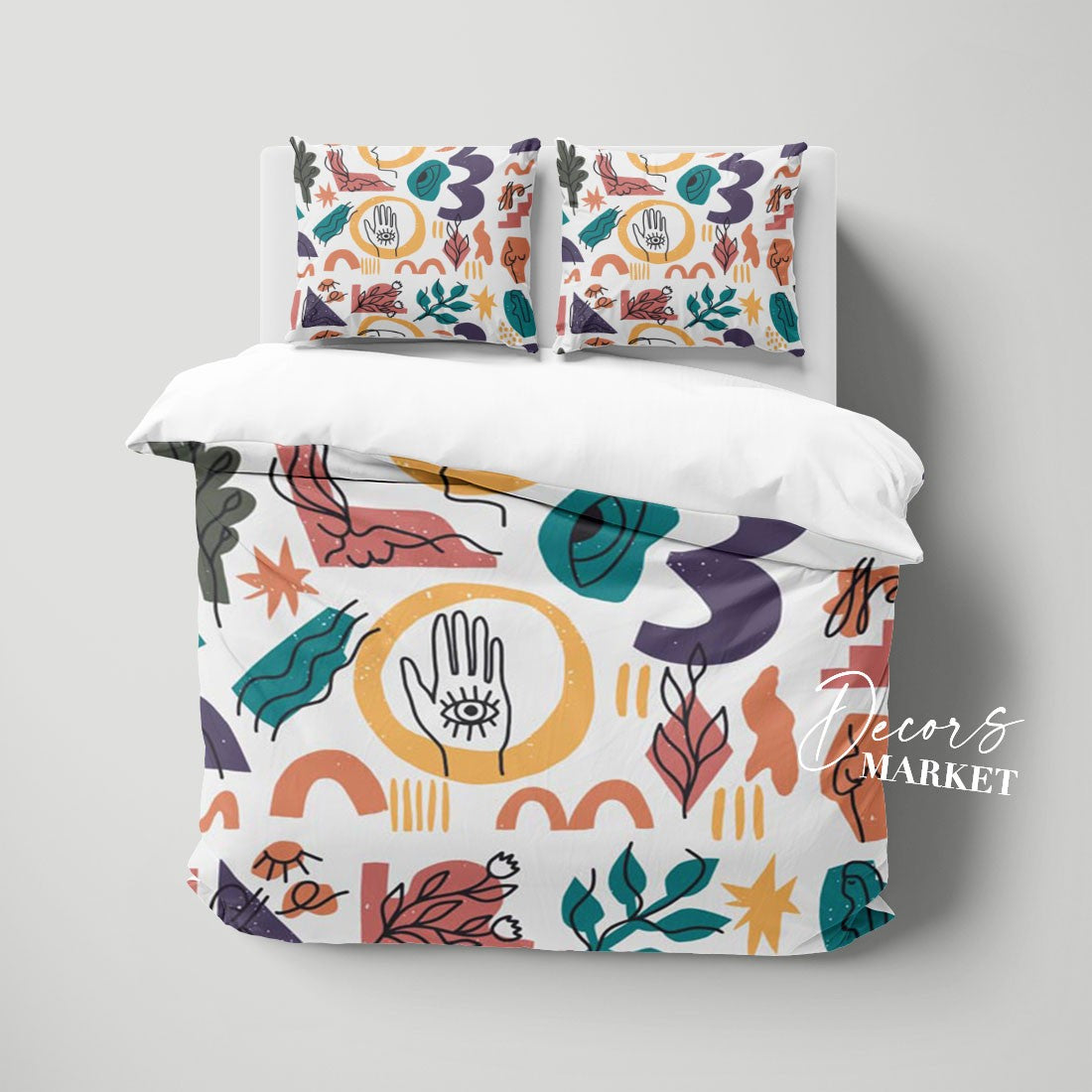 Face Hand Duvet Cover Set w Pillowcases, Colorful Graffiti Graffiti 3D Quilt Cover, 3pc Single Double Queen King Size Doona Cover