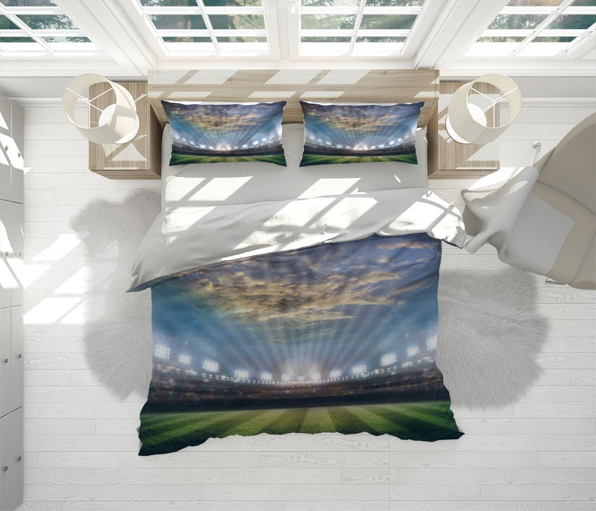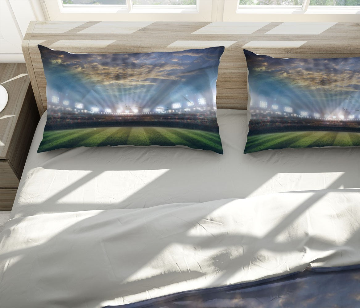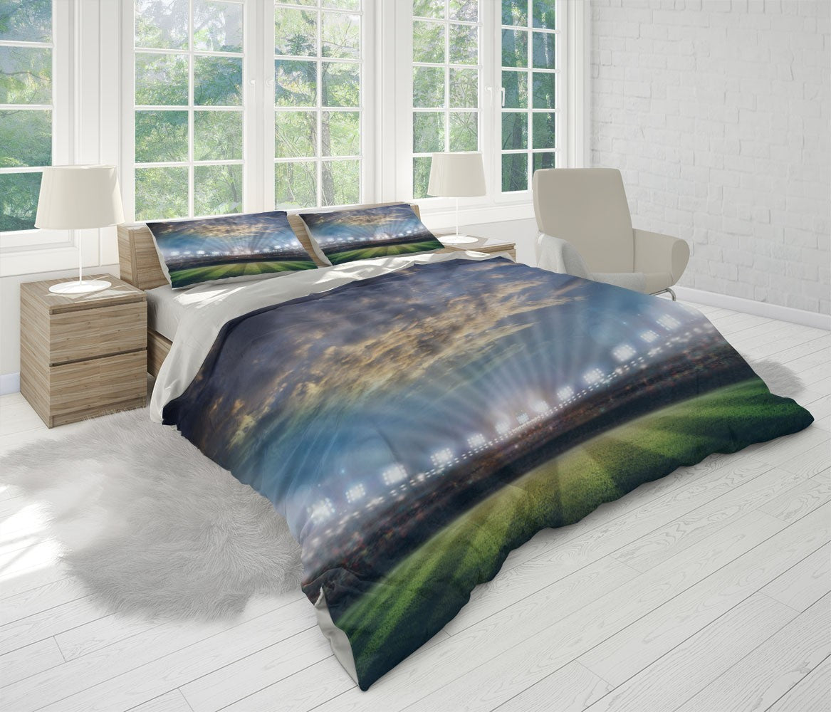 Football Field Duvet Cover Set W Pillow Cover, Dark Hobby Sports 3D Quilt Cover, Single Double Queen King Size Doona Cover