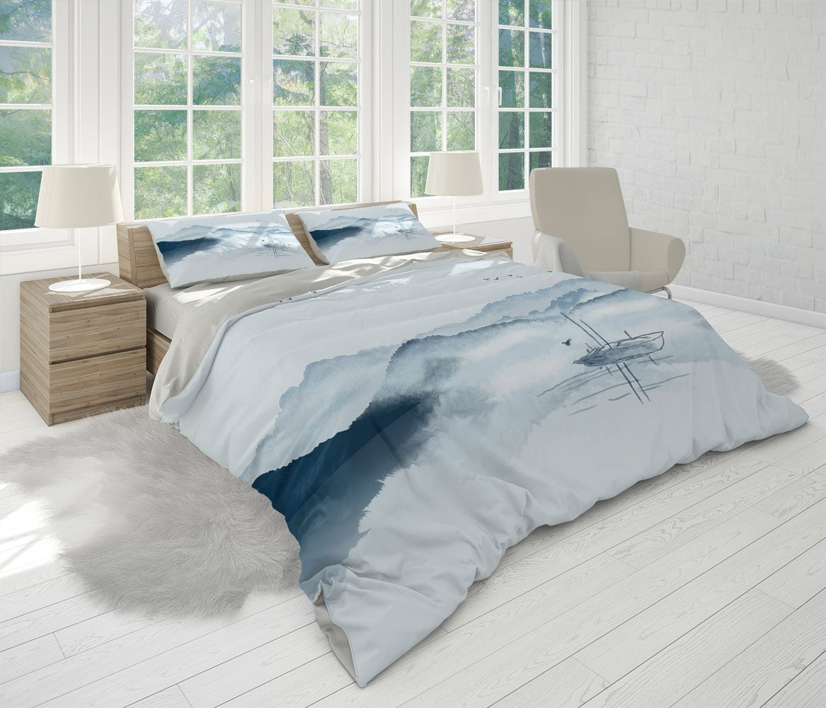 Ink Misty Duvet Cover Set W Pillow Cover, Gray Art Chinoiserie 3D Quilt Cover, Single Double Queen King Size Doona Cover