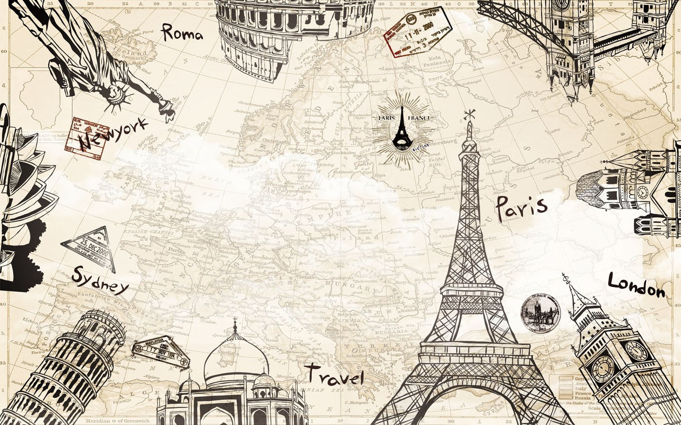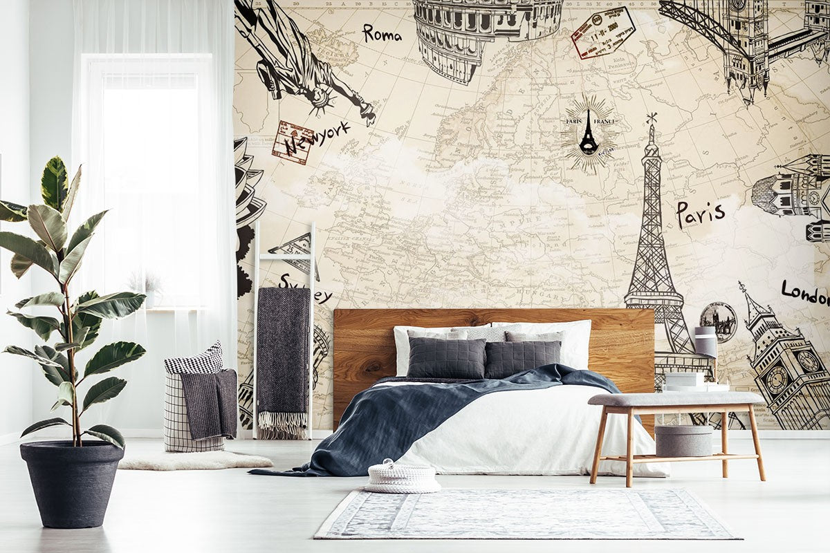Landmarks Map City Creamy Wallpaper Mural,Self-Adhesive Peel And Stick 3D Wall Mural,Bedroom Designer Wall Decor