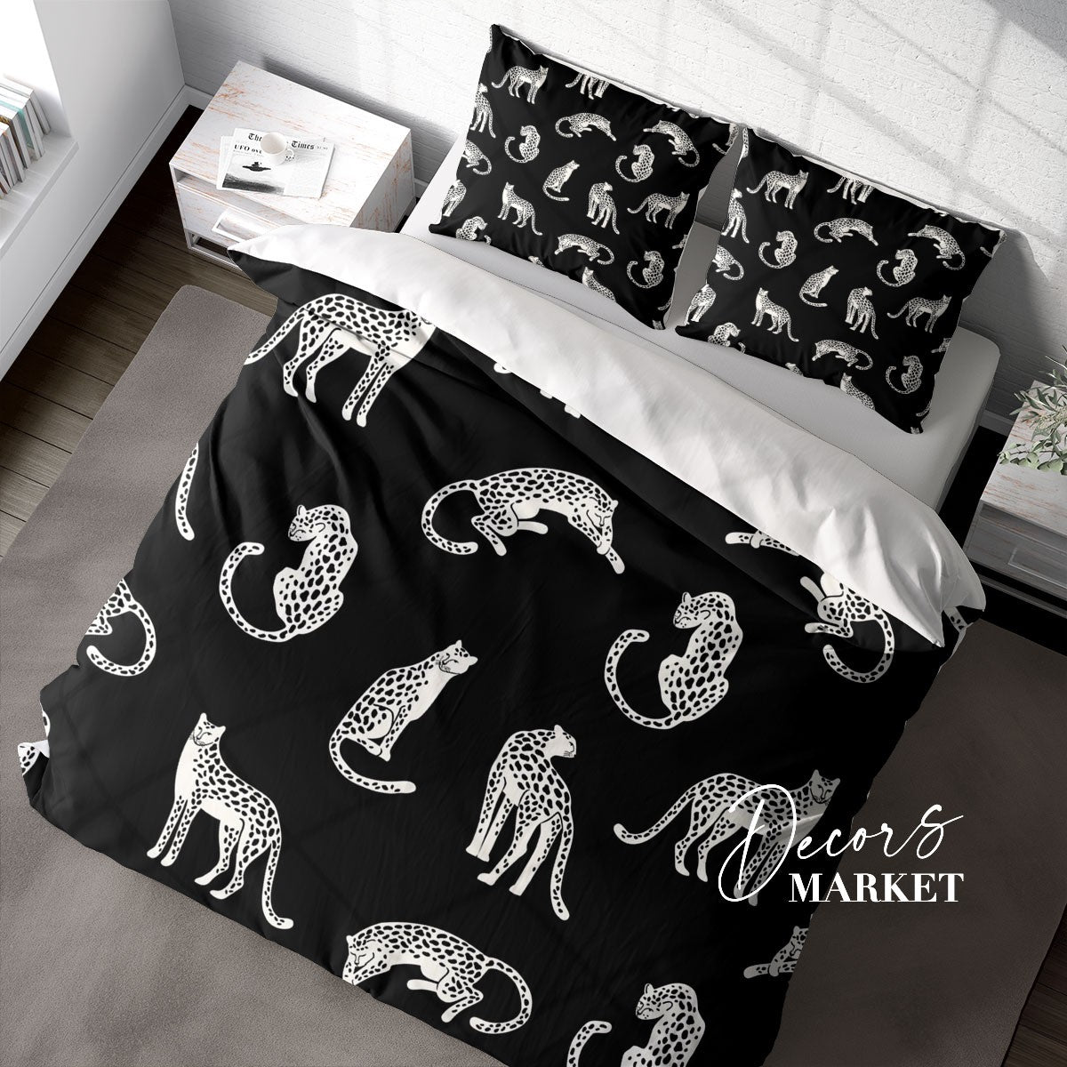 Leopard Spot Duvet Cover Set w Pillowcases, Black&White Art Fantasy 3D Quilt Cover, 3pc Single Double Queen King Size Doona Cover
