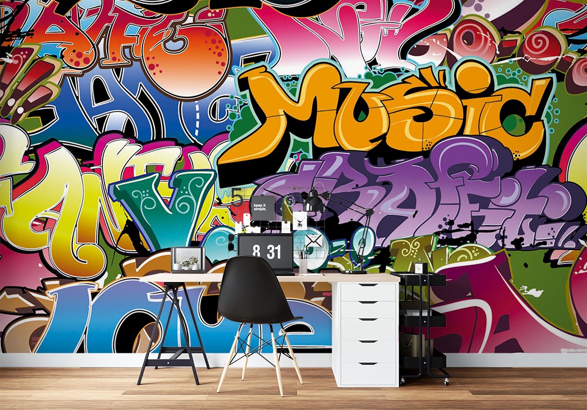 Letter Graffiti Multicolour Wallpaper Mural,Self-Adhesive Peel And Stick 3D Wall Paper,Removable Designer Wall Decor