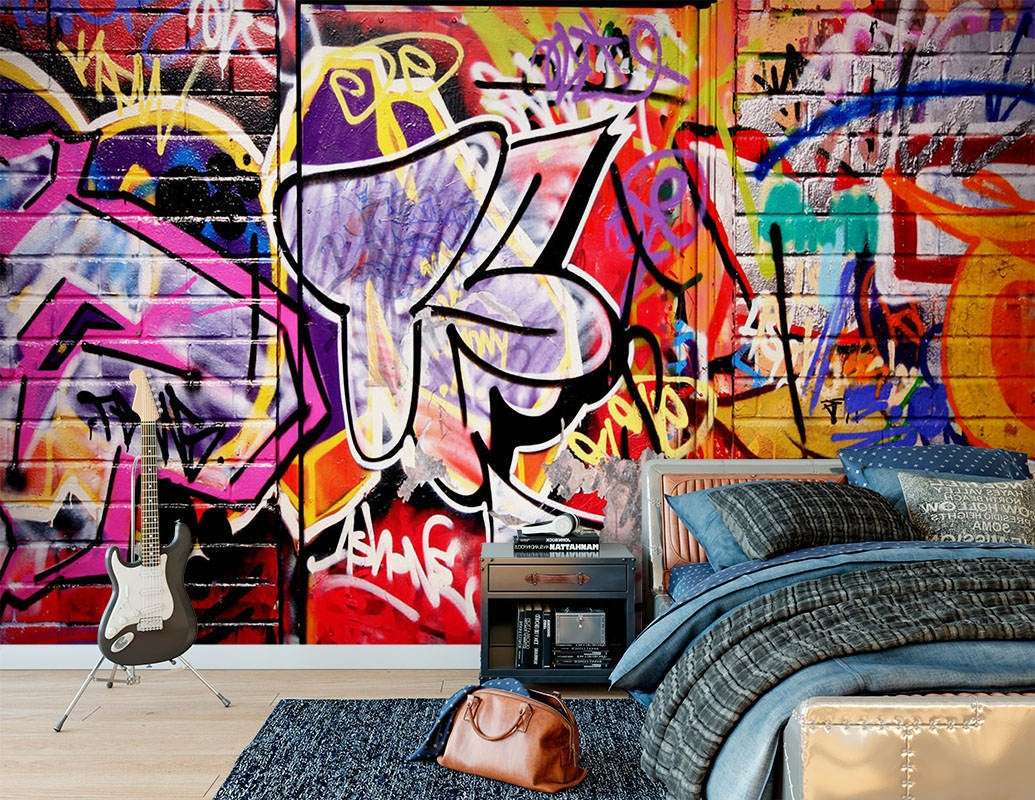 Letter Graffiti Multicolour Wallpaper Mural,Self-Adhesive Peel And Stick 3D Wall Paper,Bedroom Australian Company Wall Decor