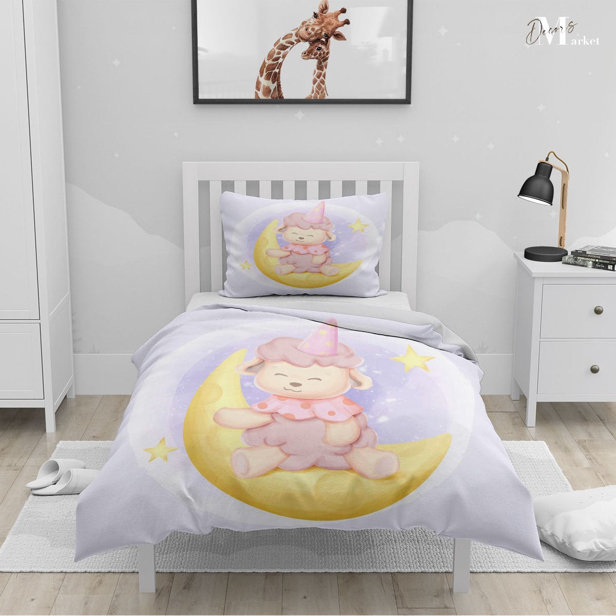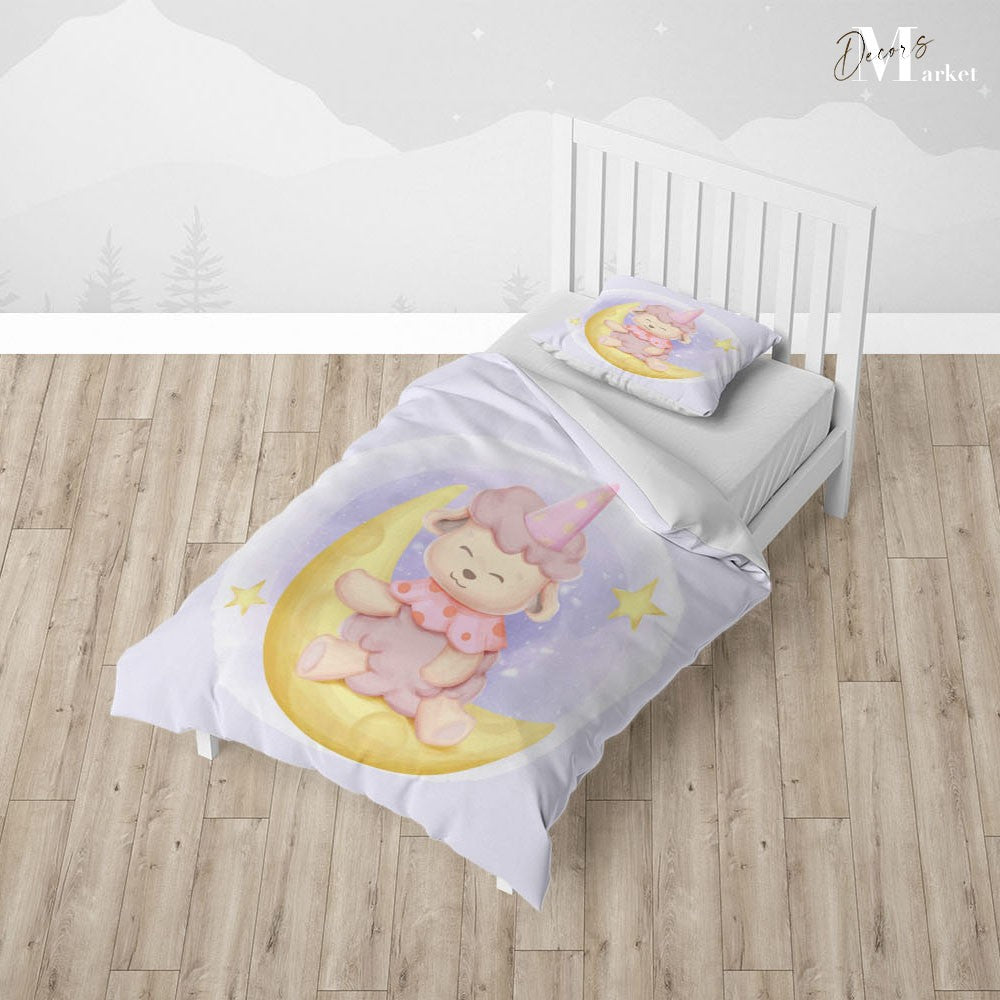 Lovely Sheep Moon Duvet Cover Set w Pillow Cover, Purple Kids Animal 3D Quilt Cover, Single Double Queen King Size Doona Cover