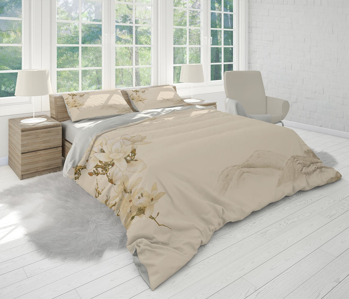 Magnolia Duvet Cover Set W Pillow Cover, Creamy Art Chinoiserie 3D Quilt Cover, Single Double Queen King Size Doona Cover