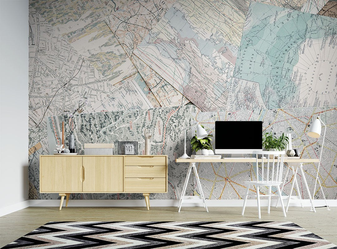 Map Art Pop Art Creamy Wallpaper Mural,Self-Adhesive Peel And Stick 3D Wall Decor,Removable Australian Company Wall Decor