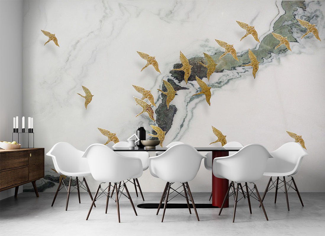 Marble Birds Texture White Wallpaper Mural,Self-Adhesive Peel And Stick 3D Wall Paper,Australian Company Bedroom Wall Decor