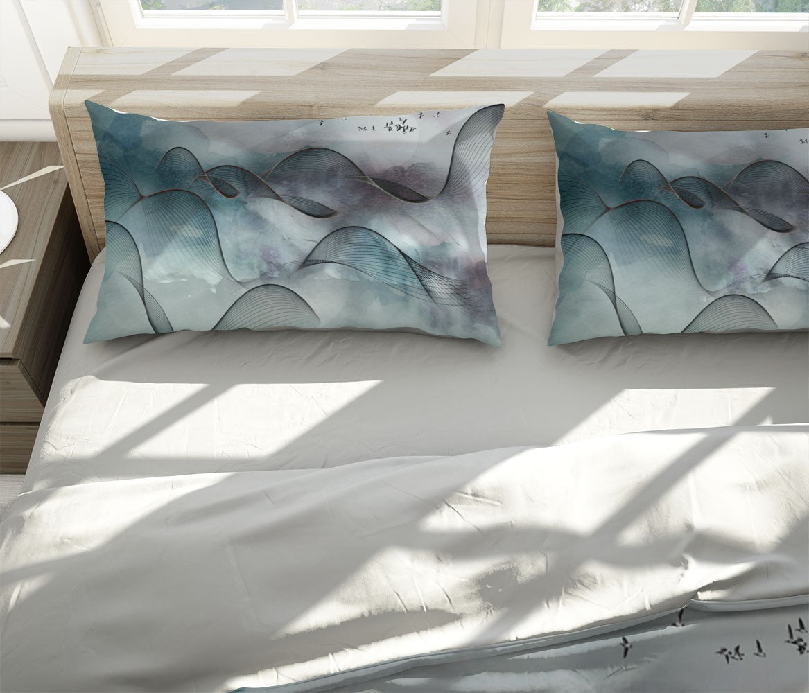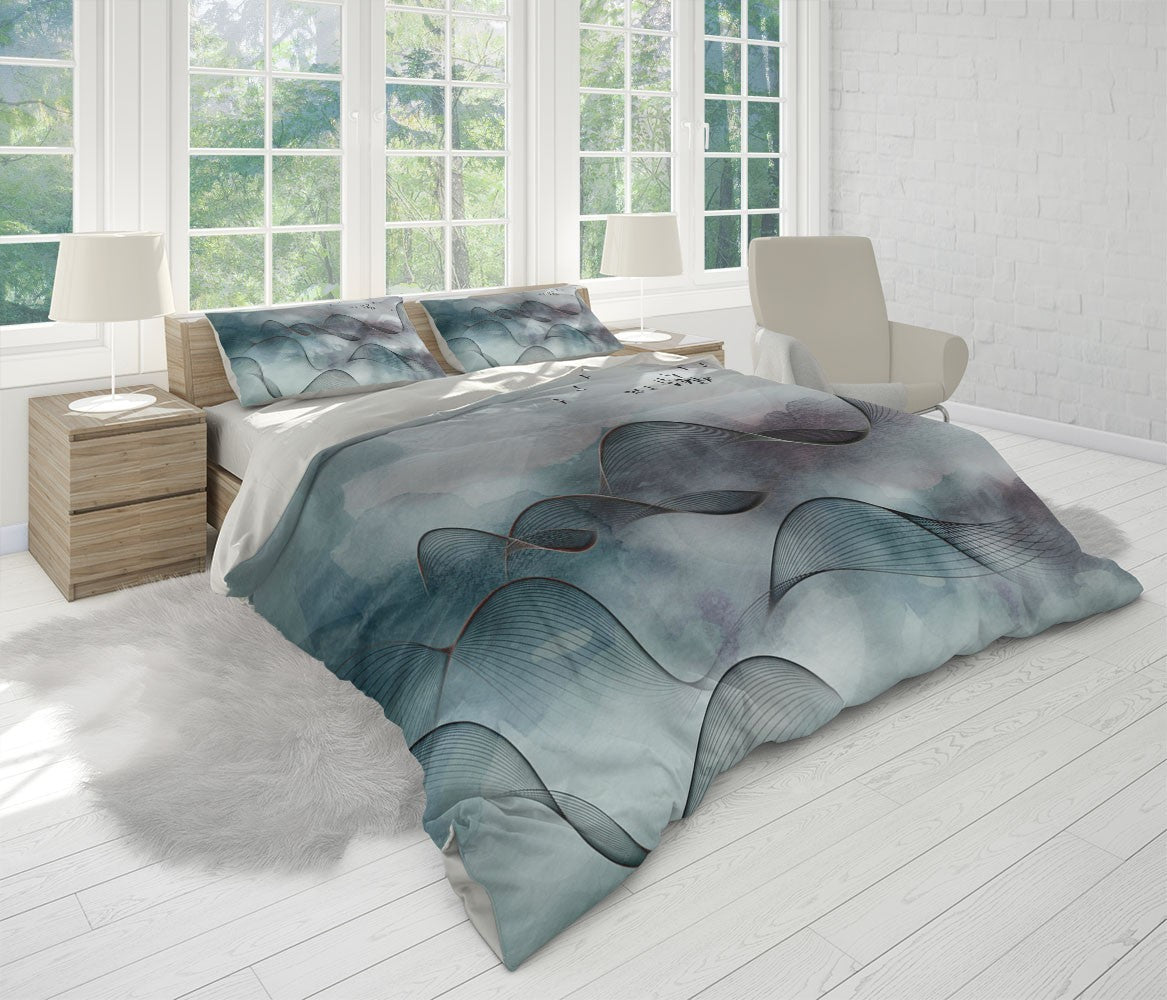Misty Line Duvet Cover Set W Pillow Cover, Dark Art Chinoiserie 3D Quilt Cover, Single Double Queen King Size Doona Cover