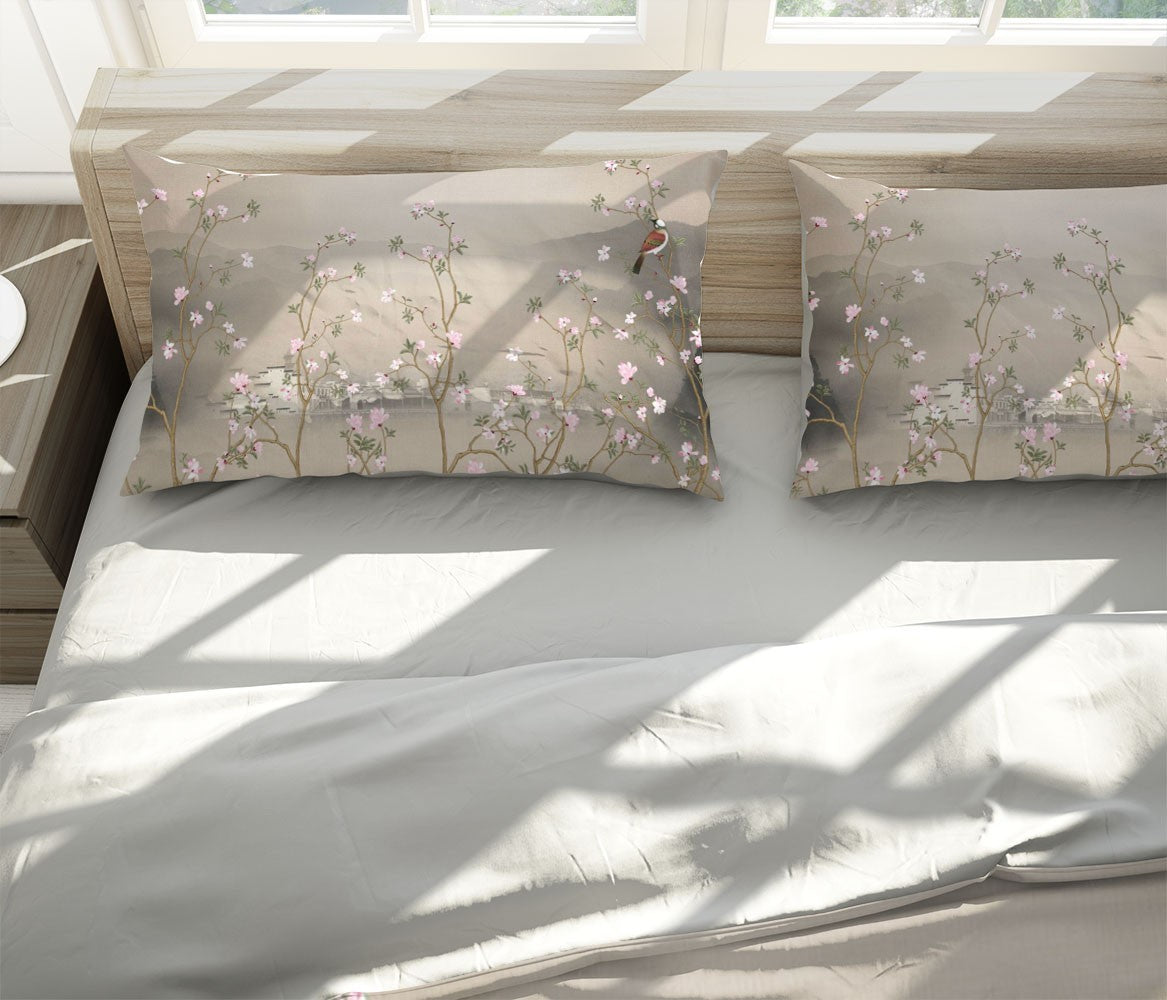 Misty Town Duvet Cover Set W Pillow Cover, Brown Art Chinoiserie 3D Quilt Cover, Single Double Queen King Size Doona Cover