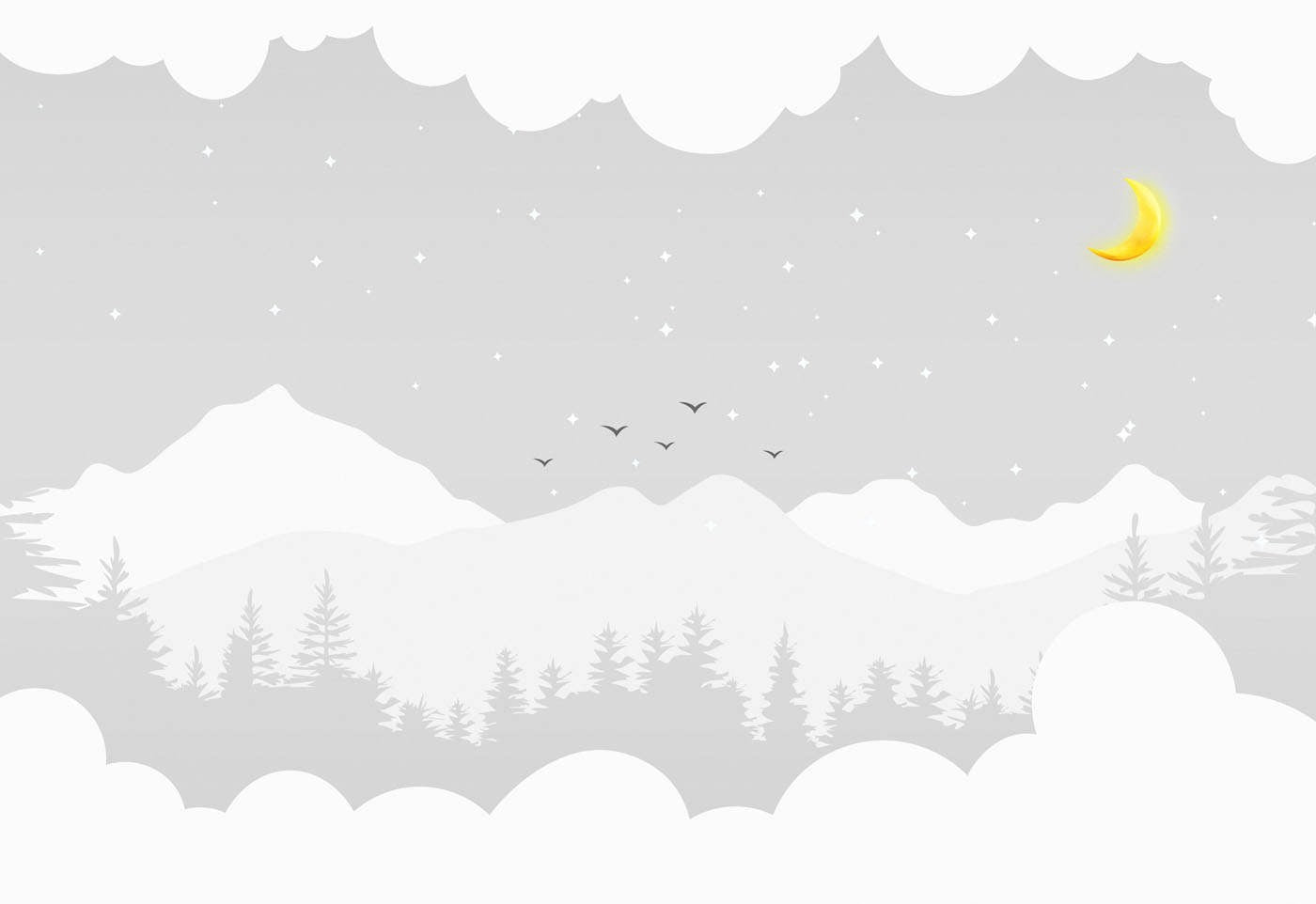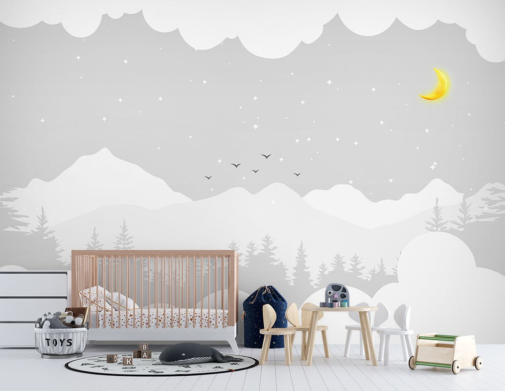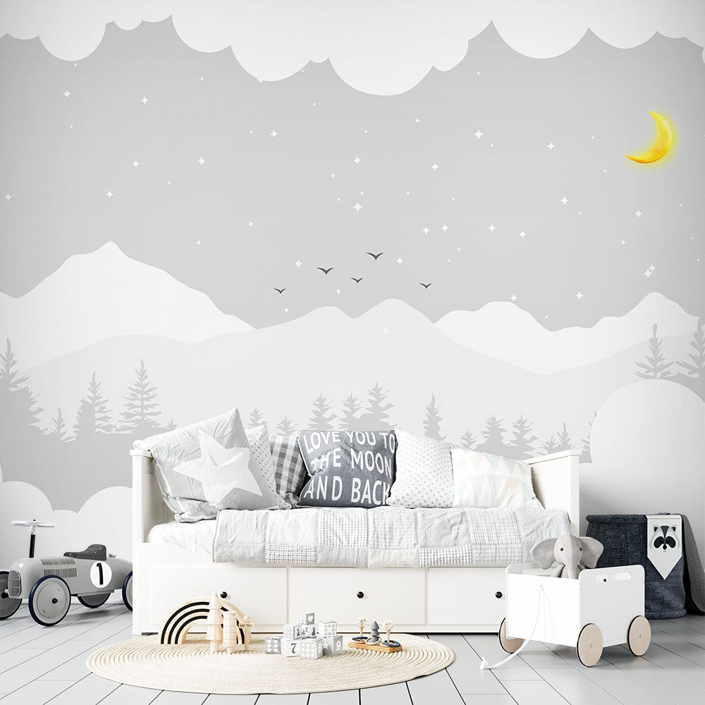 Mountain,Night Kids Cartoon Gray Wallpaper Mural,Self-Adhesive Peel And Stick 3D Wall Art,Australian Company Bedroom Wall Decor