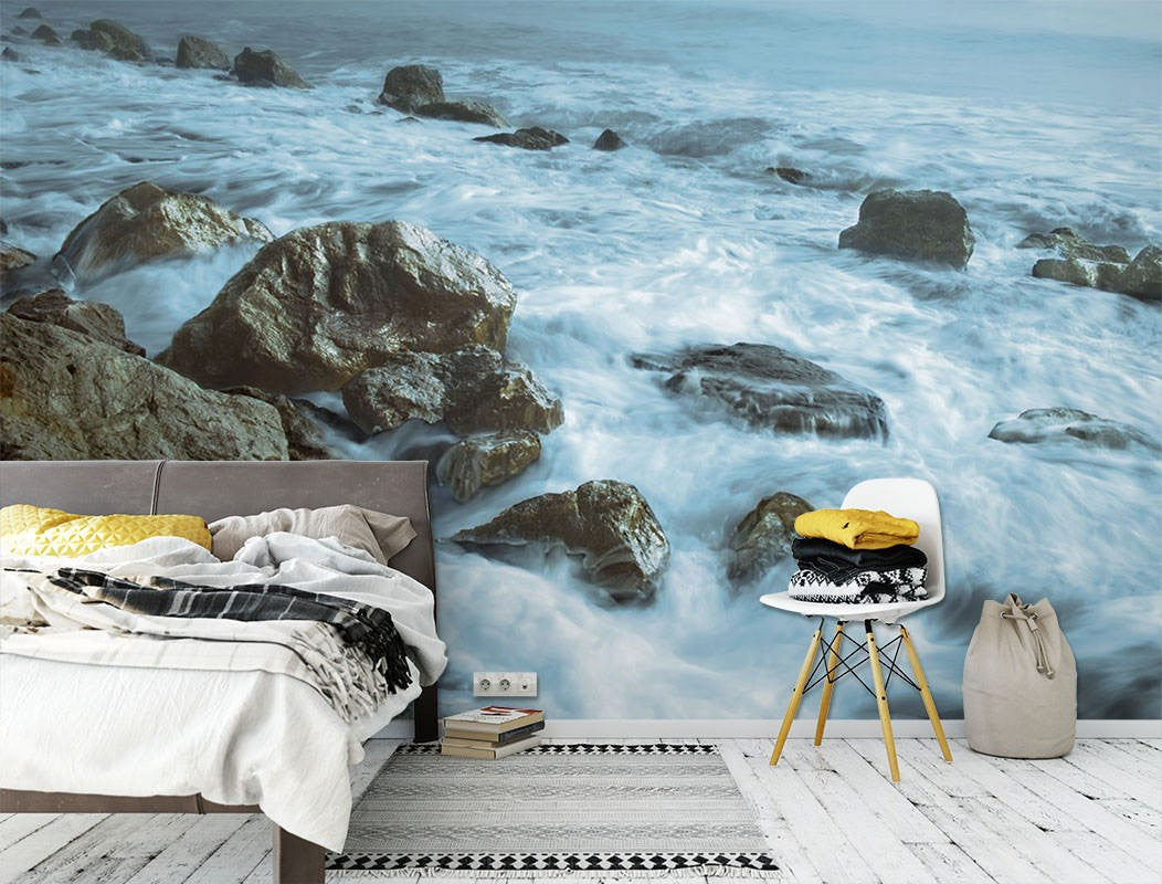 Ocean Wave Beach Blue Wallpaper Mural,Self-Adhesive Peel And Stick 3D Wall Decal,Bedroom Australian Company Wall Decor
