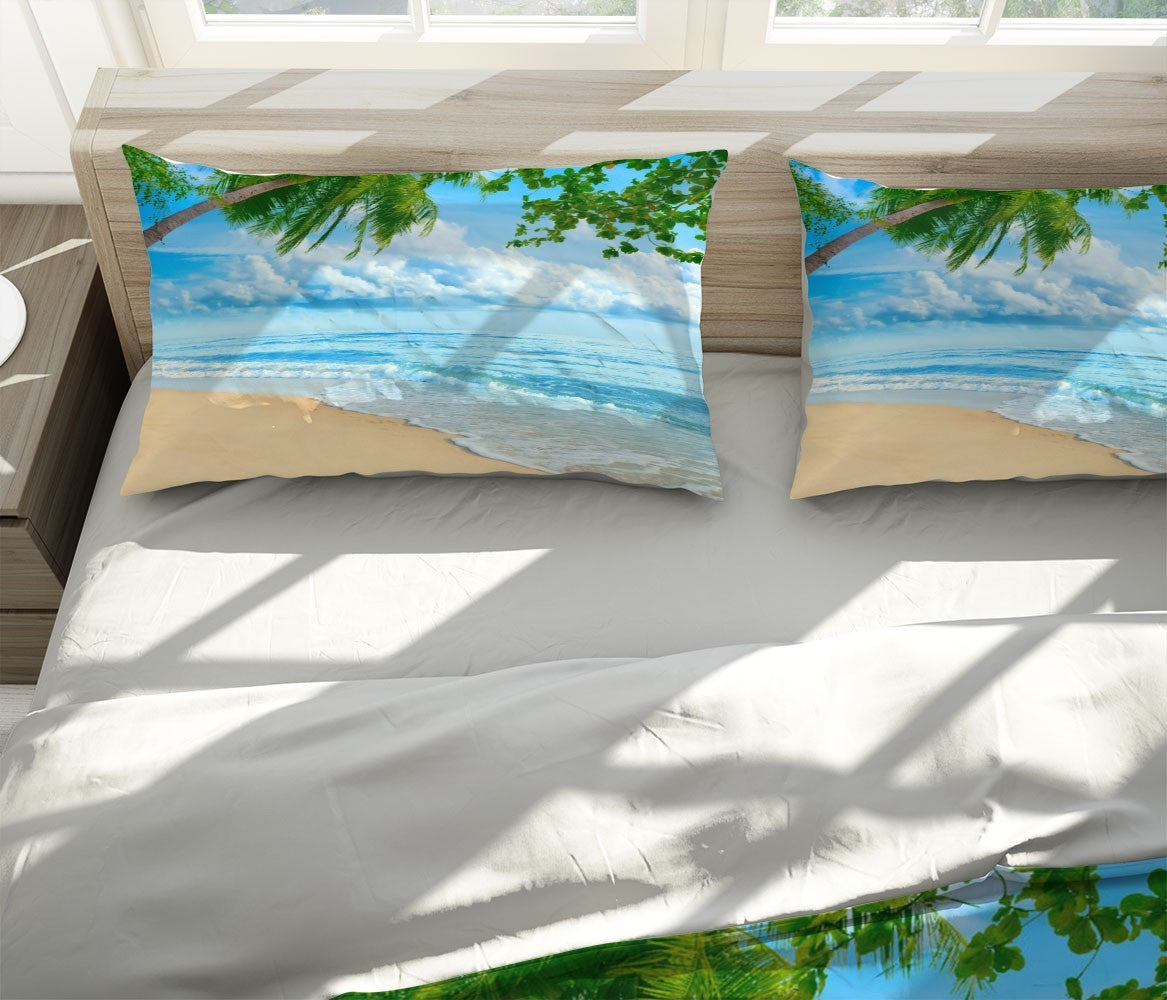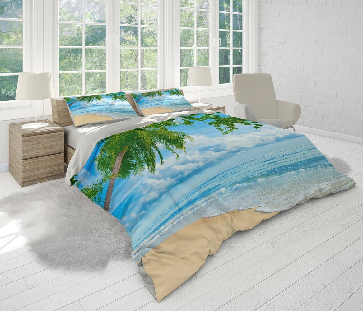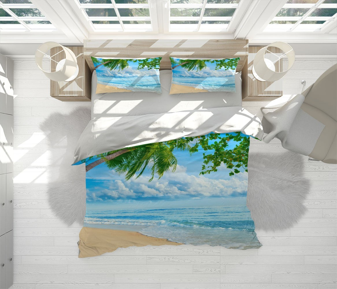 Palm Tree Duvet Cover Set W Pillow Cover, Blue Beach Beach 3D Quilt Cover, Single Double Queen King Size Doona Cover