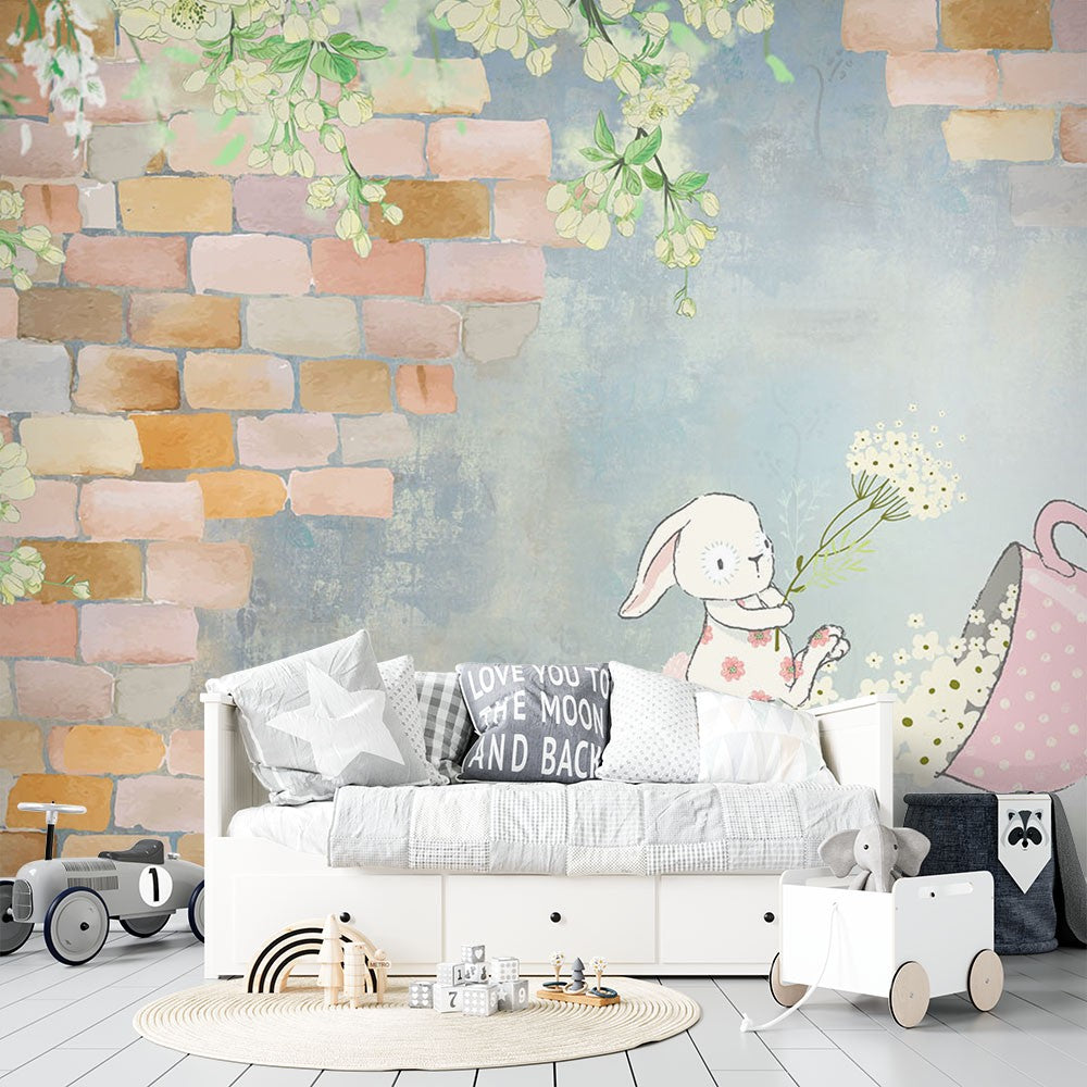 Rabbit Kids Cartoon Multicolour Wallpaper Mural,Self-Adhesive Peel And Stick 3D Wall Decal,Bedroom Designer Wall Decor