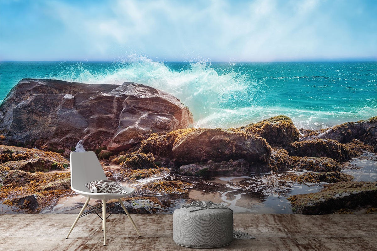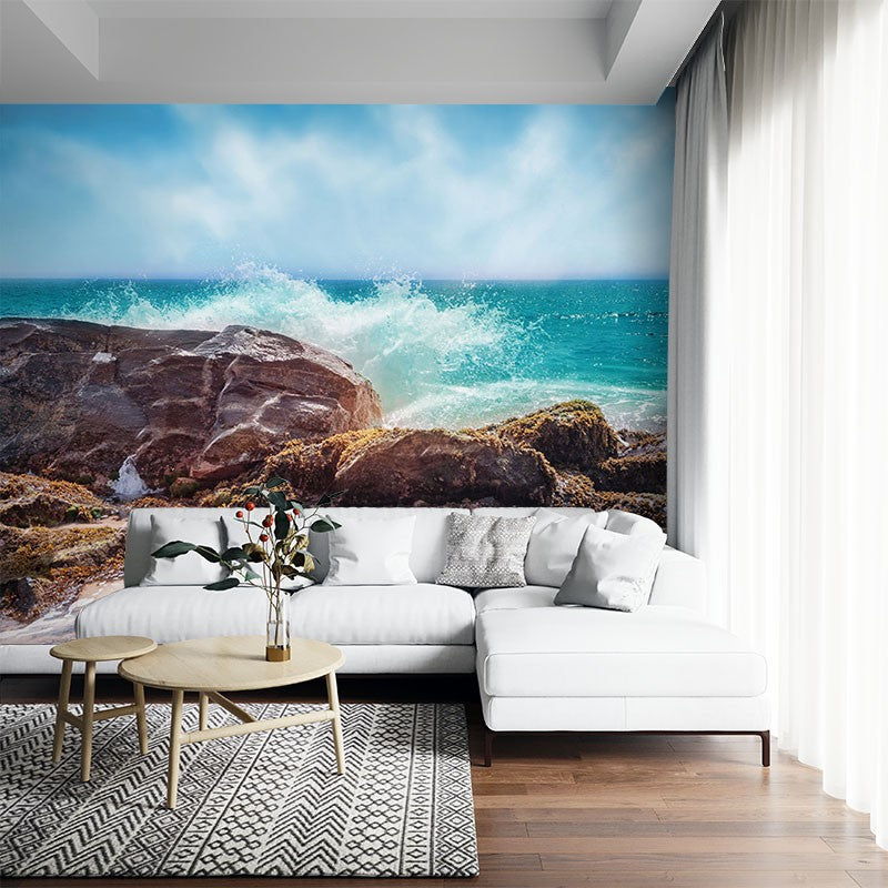 Reef Horizon Beach Wave Blue Wallpaper Mural,Self-Adhesive Peel And Stick 3D Wall Paper,Removable Designer Wall Decor