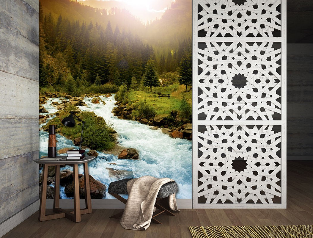 River Forest Nature Rivers Lakes Green Wallpaper Mural,Self-Adhesive Peel And Stick 3D Wall Decal,Removable Designer Wall Decor