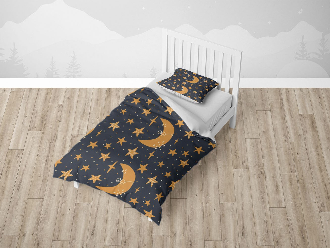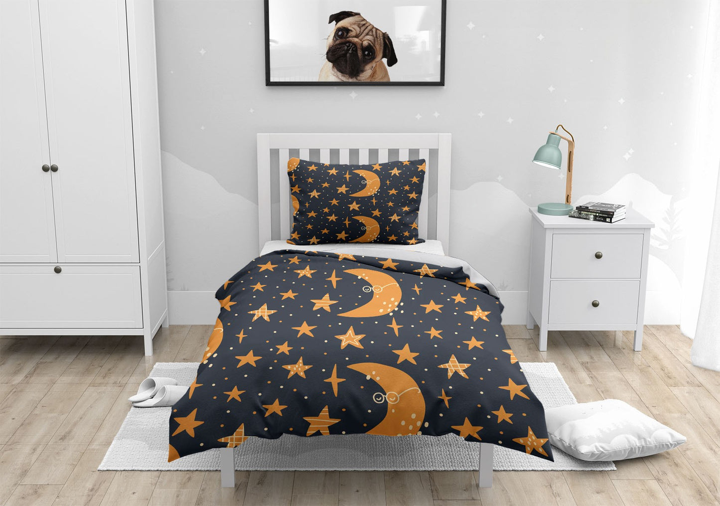 Star Moon Sky Duvet Cover Set w Pillowcases, Dark Kids Patterns 3D Quilt Cover, 3pc Single Double Queen King Size Doona Cover