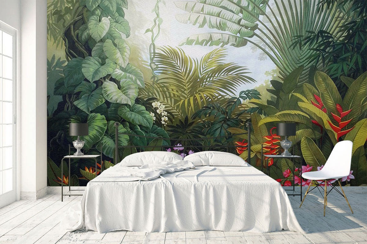 Tropical Leaves Floral Green Wallpaper Mural,Self-Adhesive Peel And Stick 3D Wall Decal,Removable Australian Company Wall Decor