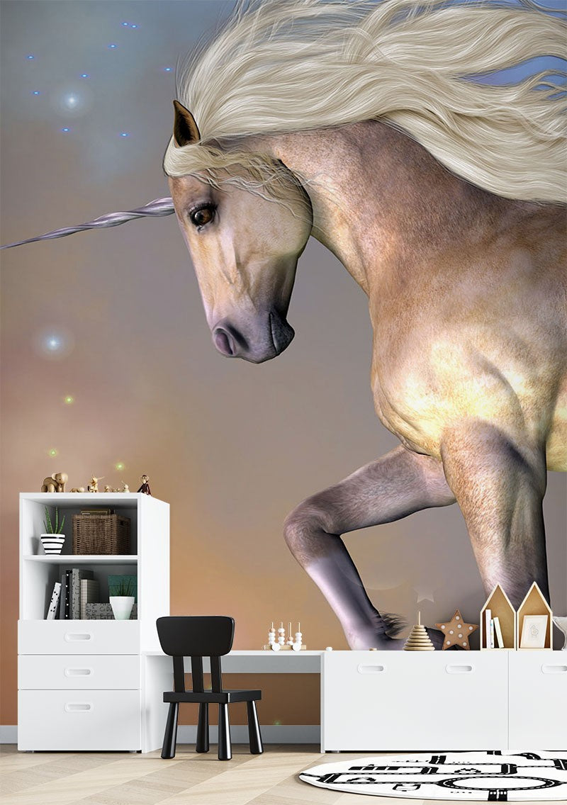 Unicorn Fairy Kids Fantasy Brown Wallpaper Mural,Self-Adhesive Peel And Stick 3D Wall Mural,Bedroom Australian Company Wall Decor