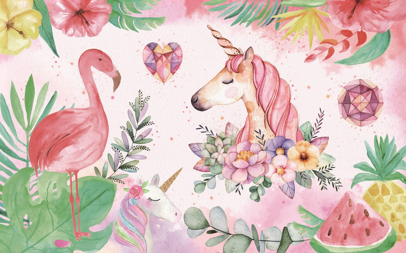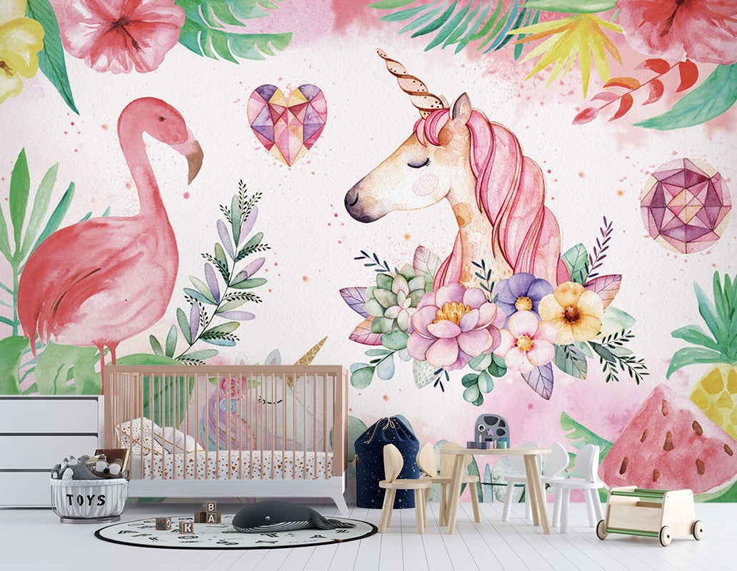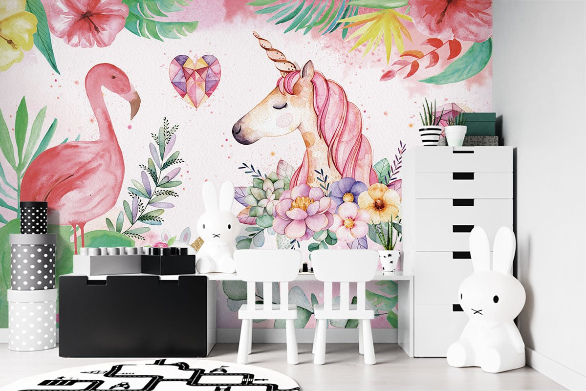 Unicorn Flamingo Kids Animal Multicolour Wallpaper Mural,Self-Adhesive Peel And Stick 3D Wall Decor,Designer Australian Company Wall Decor
