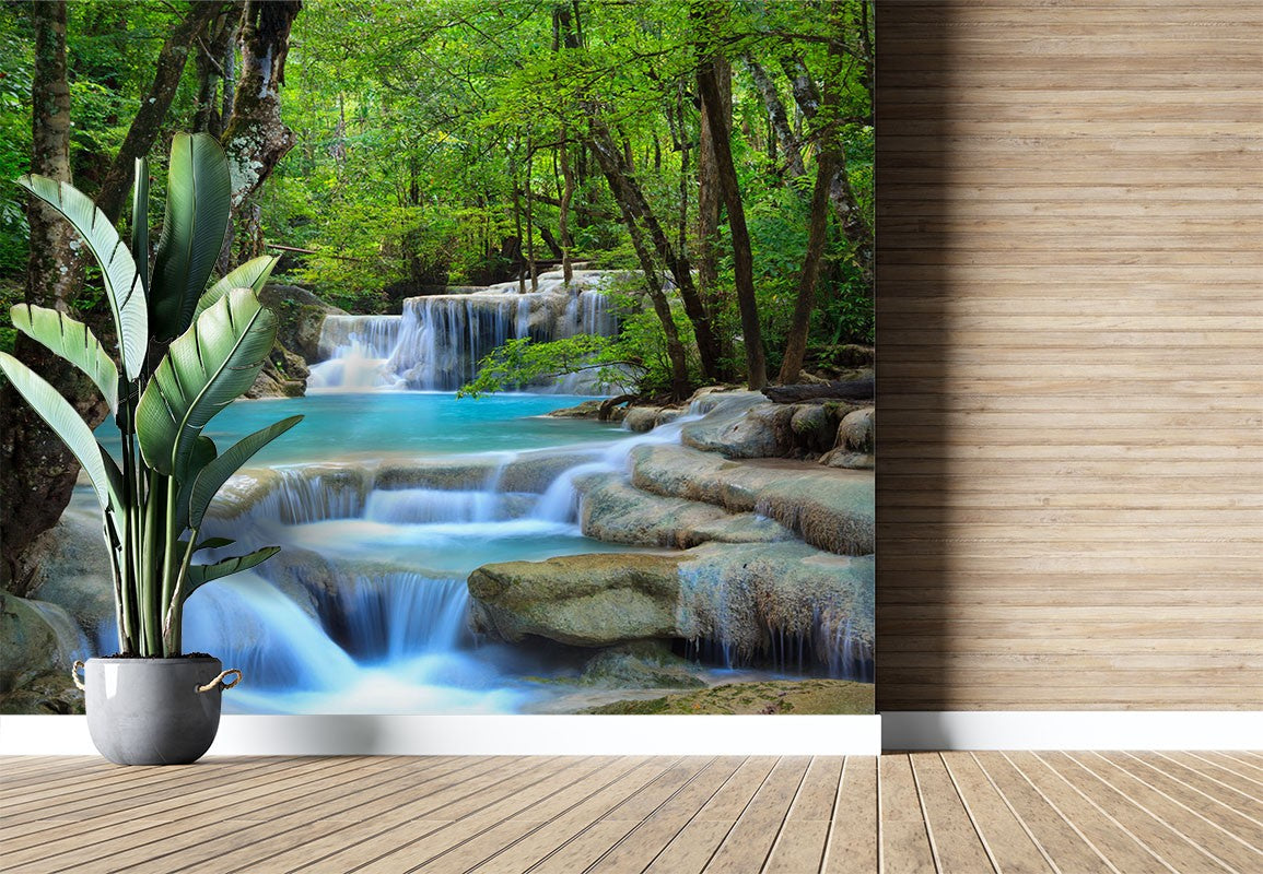 Waterfall Forest Nature Green Wallpaper Mural,Self-Adhesive Peel And Stick 3D Wall Decor,Removable Designer Wall Decor