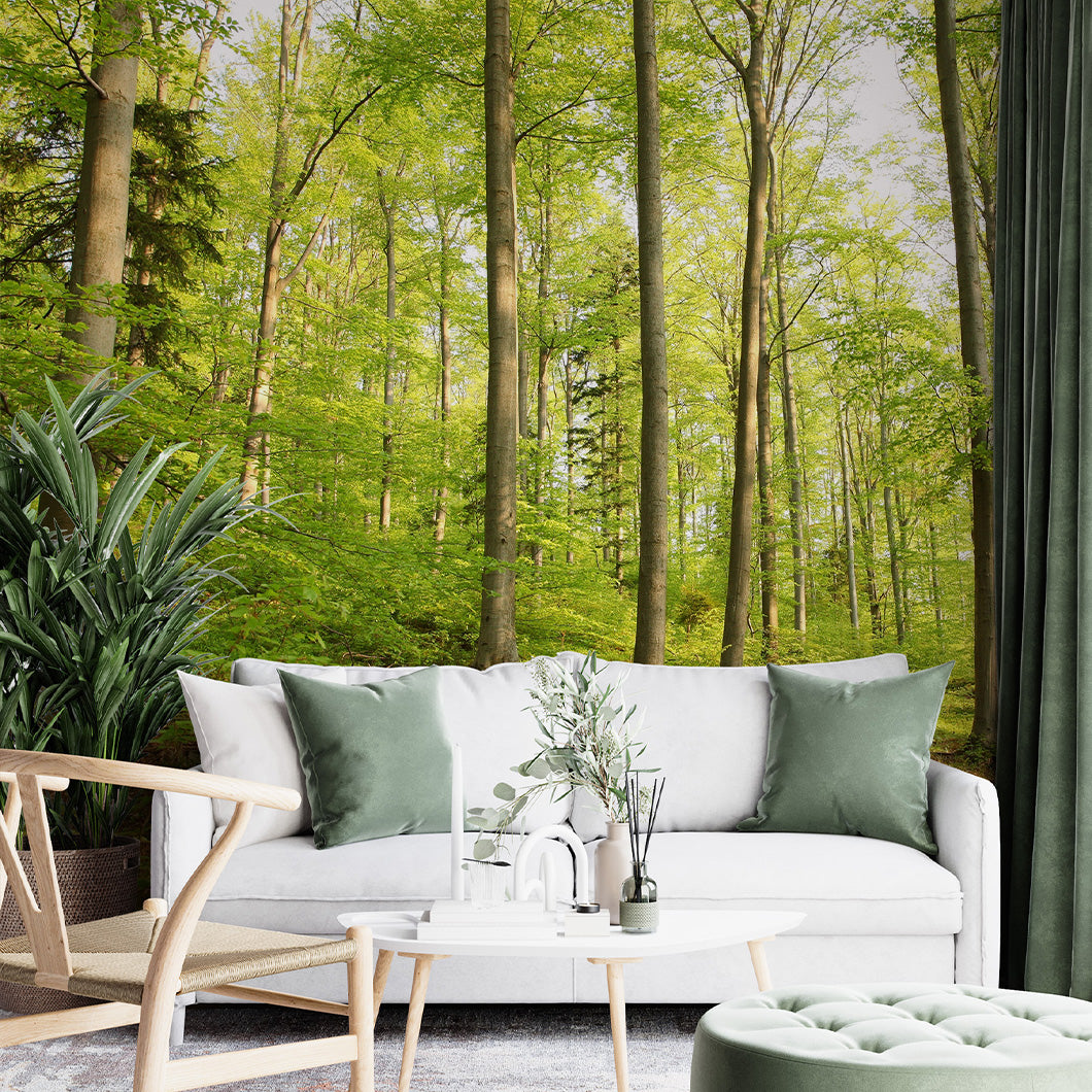 Trees Forest Green Wallpaper Mural,Self-Adhesive Peel And Stick 3D Wall Art,Removable Bedroom Wall Decor