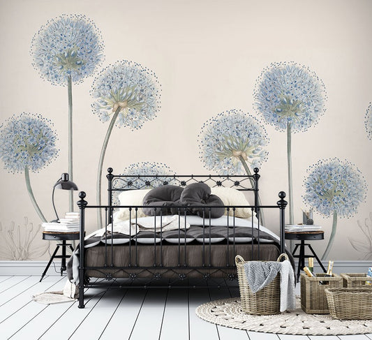 Dandelion Floral Dutch Flowers Blue Wallpaper Mural,Self-Adhesive Peel And Stick 3D Wall Mural,Australian Company Bedroom Wall Decor