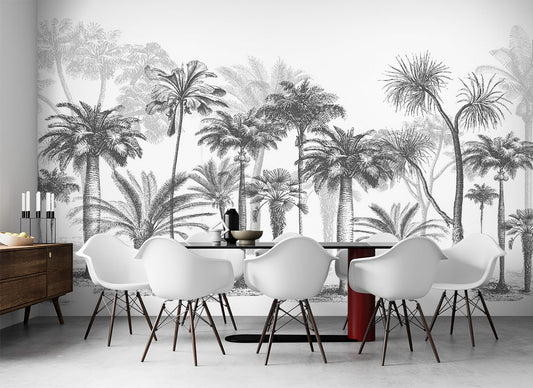 Palm Trees Art Traditional Black&White Wallpaper Mural,Self-Adhesive Peel And Stick 3D Wall Decor,Bedroom Designer Wall Decor