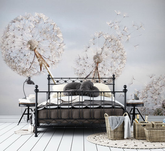Dandelion Floating Floral Dutch Flowers White Wallpaper Mural,Self-Adhesive Peel And Stick 3D Wall Art,Removable Designer Wall Decor