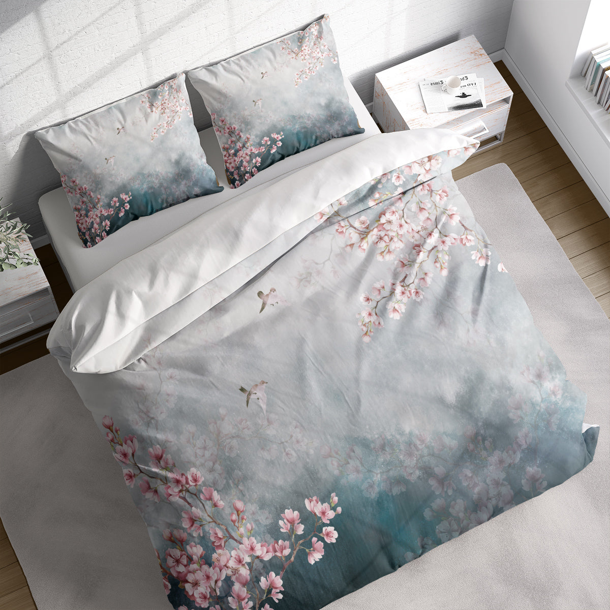 Carte Vintage Avec Duvet Cover Set w Pillowcases, Blue Floral Patterns 3D Quilt Cover, 3pc Single Double Queen King Size Doona Cover