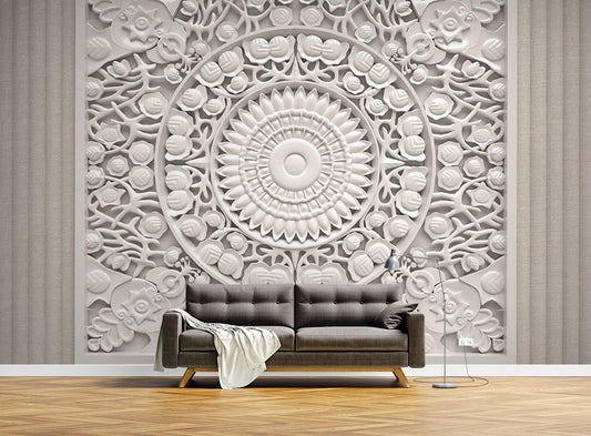 Sun Flower Mandala Floral Dutch Flowers Creamy Wallpaper Mural,Self-Adhesive Peel And Stick 3D Wall Art,Bedroom Designer Wall Decor