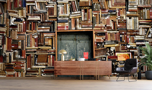 Bookshelf Art Pop Art Brown Wallpaper Mural,Self-Adhesive Peel And Stick 3D Wall Decor,Australian Company Bedroom Wall Decor
