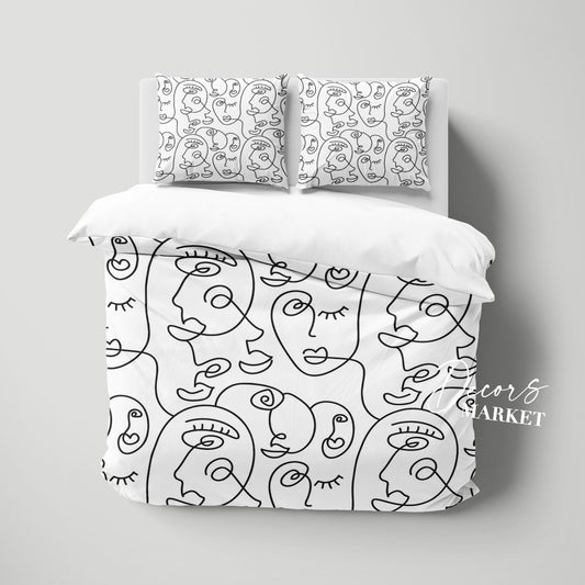 Abstract Art Face Duvet Cover Set w Pillowcases, White Texture Patterns 3D Quilt Cover, 3pc Single Double Queen King Size Doona Cover