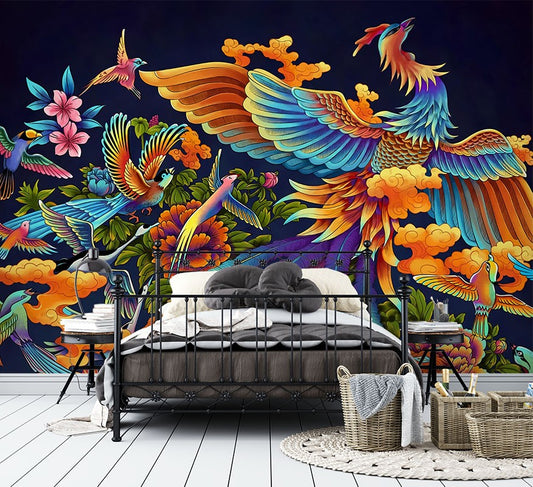 Phoenix Birds Fantasy Animals Orange Wallpaper Mural,Self-Adhesive Peel And Stick 3D Wall Art,Australian Company Bedroom Wall Decor