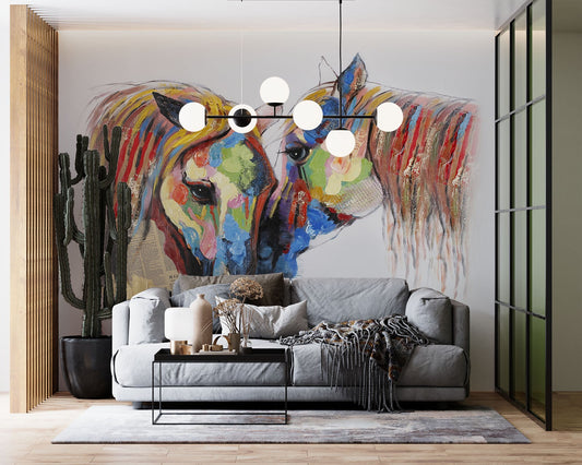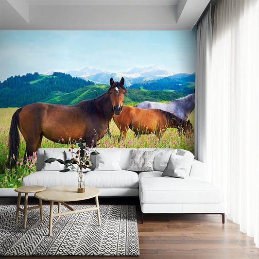 Mustang Animals Horses Brown Wallpaper Mural,Self-Adhesive Peel And Stick 3D Wall Decal,Designer Bedroom Wall Decor