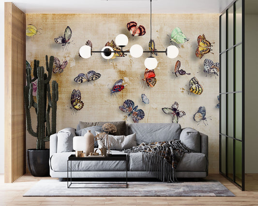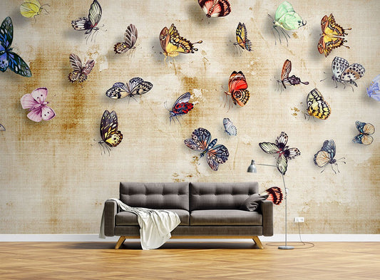 Butterfly Animals Bugs Multicolour Wallpaper Mural,Self-Adhesive Peel And Stick 3D Wall Art,Designer Australian Company Wall Decor