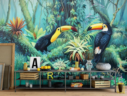 Parrot Woods Animals Birds Green Wallpaper Mural,Self-Adhesive Peel And Stick 3D Wall Decor,Removable Designer Wall Decor