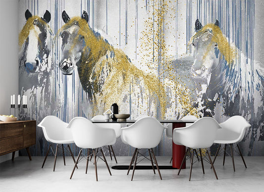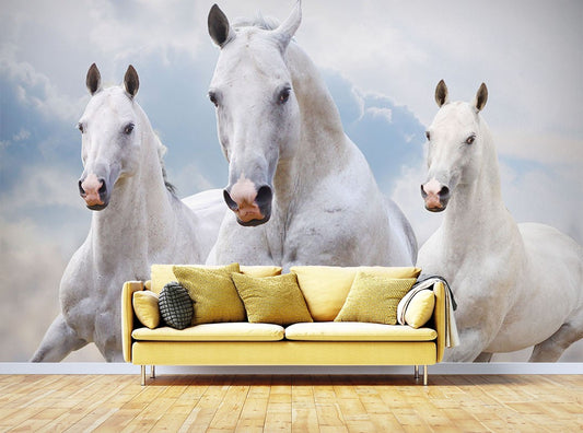 Mustang Running Animals Horses White Wallpaper Mural,Self-Adhesive Peel And Stick 3D Wall Paper,Bedroom Australian Company Wall Decor