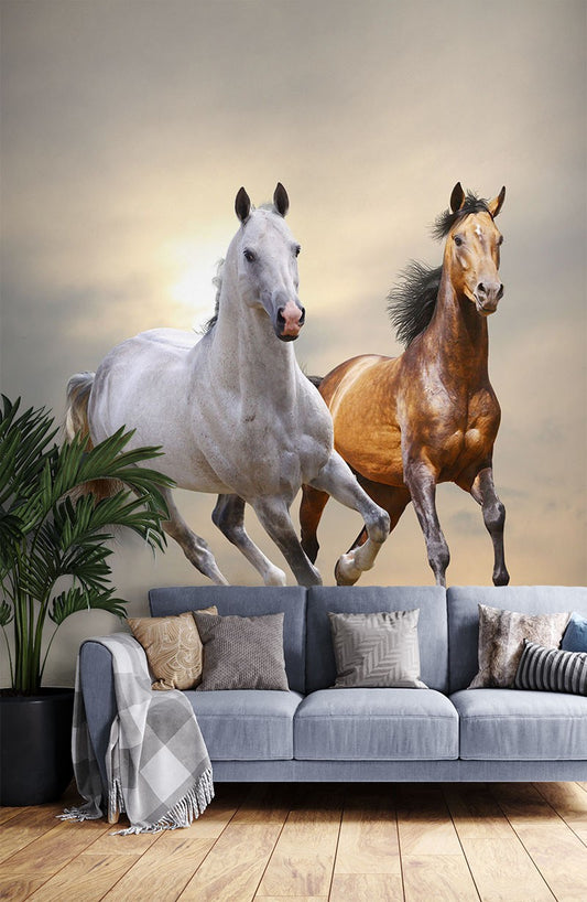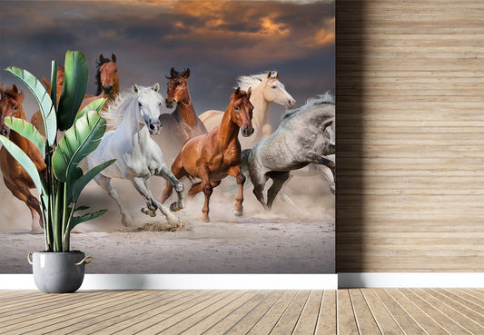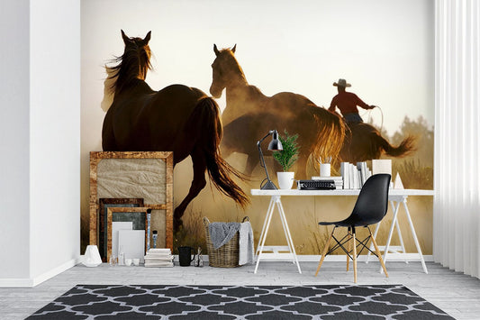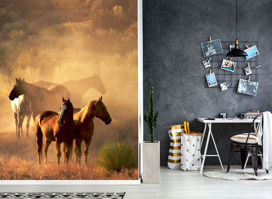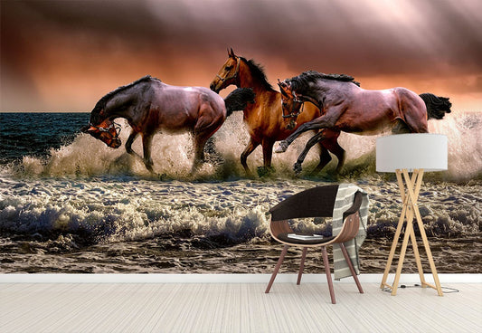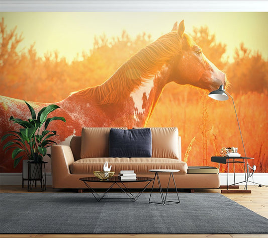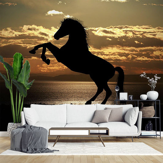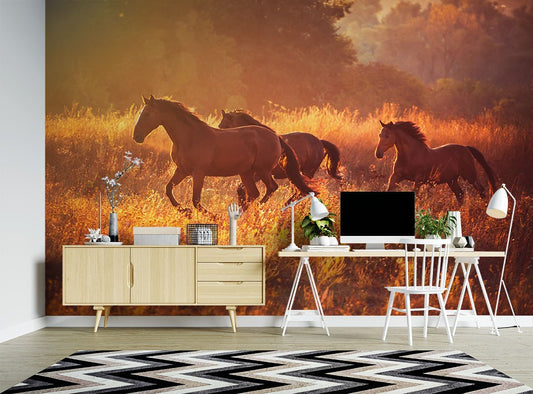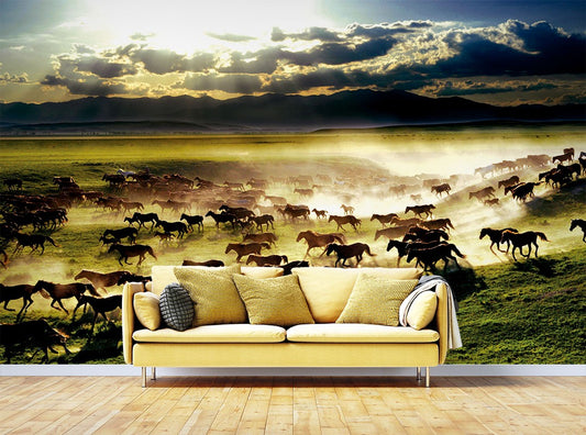 Horses Sunset Animals Brown Wallpaper Mural,Self-Adhesive Peel And Stick 3D Wall Decor,Designer Australian Company Wall Decor